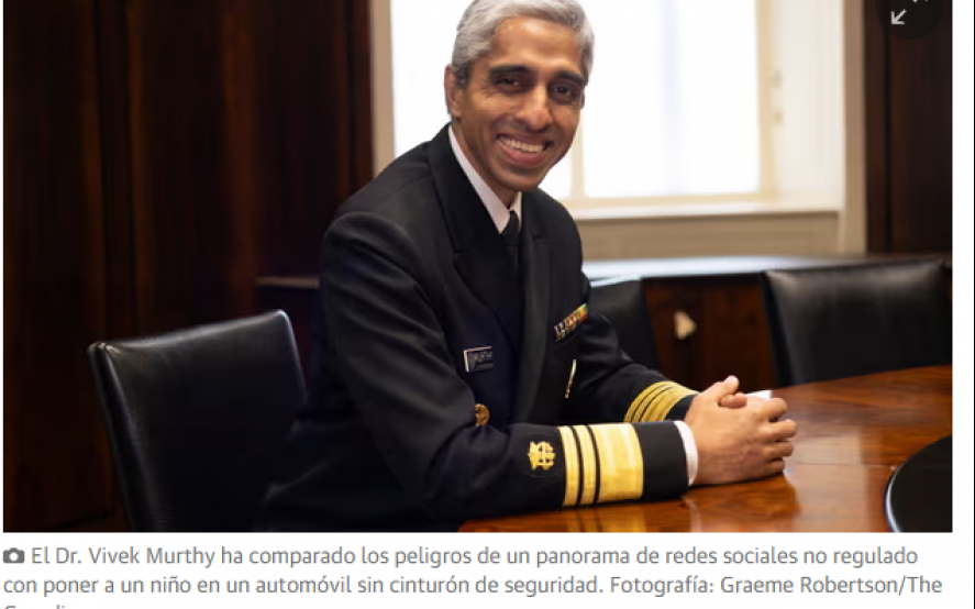 El año pasado, Murthy, quien fue nombrado por primera vez para su papel por Barack Obama y de nuevo por Joe Biden, emitió una advertencia formal en todo Estados Unidos de que las redes sociales presentaban “un profundo riesgo de daño” a la salud mental y el bienestar de los niños y adolescentes. “Todavía no tenemos suficiente evidencia para determinar si las redes sociales son lo suficientemente seguras para que las usen, dijo.