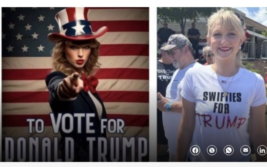 En su red social Truth Social, Trump publicó un collage de imágenes (muchas aparentemente generadas por inteligencia artificial) que sugieren que existe un gran movimiento de seguidores de Taylor Swift que lo apoyan (no lo hay).