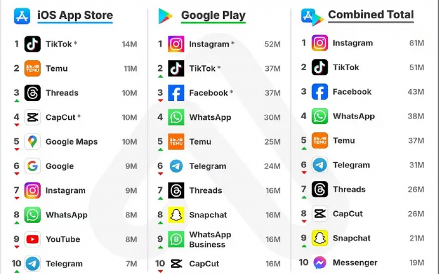 Meta siempre tiene alrededor de cuatro o cinco aplicaciones en la lista de descargas principales, aunque el rendimiento constante de Threads aquí es digno de mención.