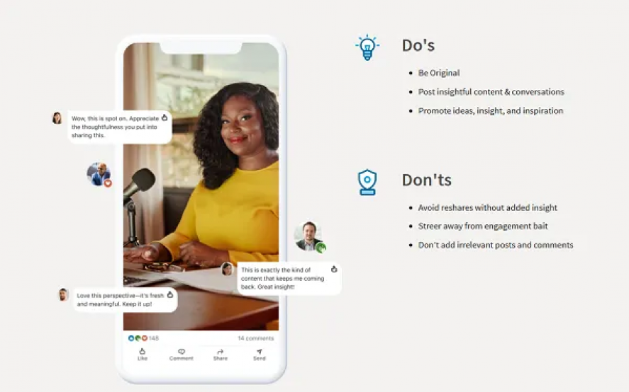 Sus consejos sobre lo que no se debe publicar brindan más información, especialmente si se tiene en cuenta que se basan en lo que el algoritmo de feed de LinkedIn buscará restringir.