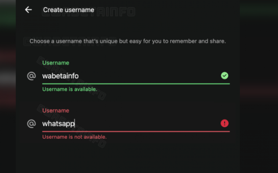 La interfaz indicará rápidamente la disponibilidad mediante una marca de verificación verde y un mensaje de confirmación cuando un nombre de usuario esté disponible. Por otro lado, si un nombre de usuario ya está en uso o reservado, el sistema muestra una advertencia roja con un icono de alerta y un mensaje que indica que el nombre de usuario no está disponible. Esto demuestra claramente que WhatsApp está desarrollando un sistema de verificación robusto para garantizar la exclusividad de cada nombre de usuario, evitando duplicados, ya que los nombres de usuario se reservan inmediatamente tras la confirmación.