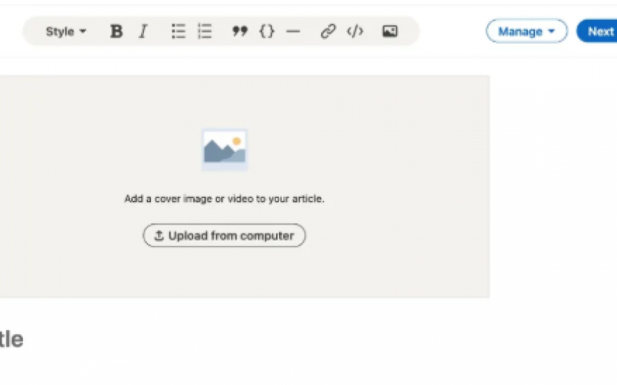 Como muestra la imagen de encabezado en los artículos de LinkedIn ahora también indica que puede “agregar una imagen de portada o un video” para acompañar su artículo de LinkedIn.