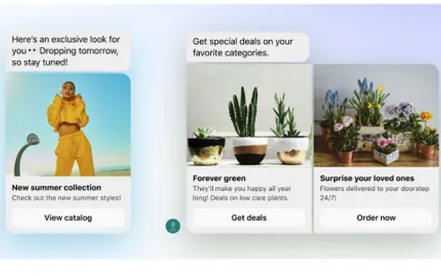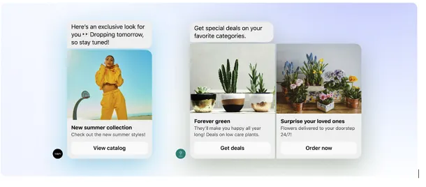 Como puede ver en estos ejemplos, los mensajes de marketing actualizados de Meta permiten promociones de DM más integradas, con conexión a una oferta específica o un listado de catálogo.