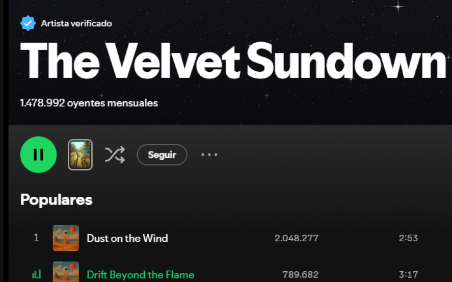Pero aunque crear una canción con IA sea gratis, eso no significa que no pueda generar ingresos. The Velvet Sundown ha recaudado alrededor de $34,235 en un período de 30 días en todas las plataformas de streaming de audio, según estimaciones de la calculadora de regalías de ChartMasters.
