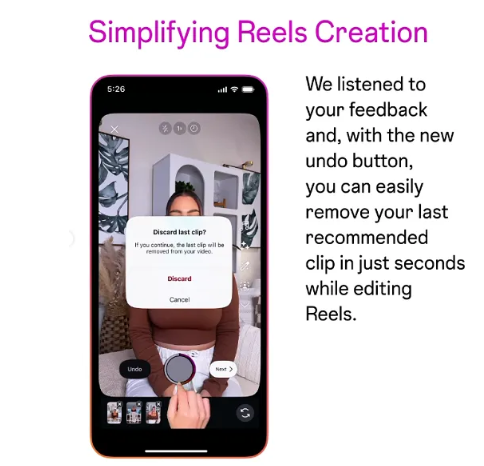 Instagram también facilita la edición de múltiples clips, con una opción simplificada de “Deshacer” para eliminar los últimos clips de tu proyecto.