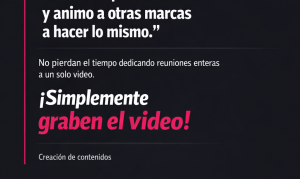 Notas “Eso es lo que me ha funcionado y animo a otras marcas a hacer lo mismo. No pierdan el tiempo dedicando reuniones enteras a un solo video. ¡Simplemente graben el video!”.